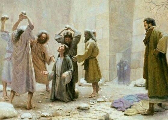 7:58 dragged him out of the city and began to stone him. Meanwhile, the witnesses laid their clothes at the feet of a young man named Saul.